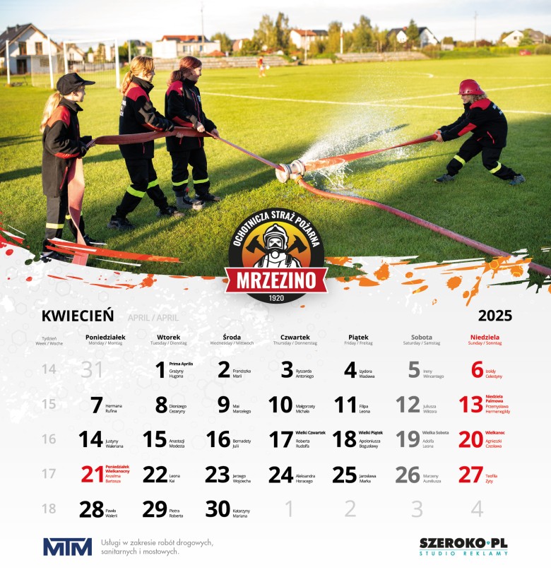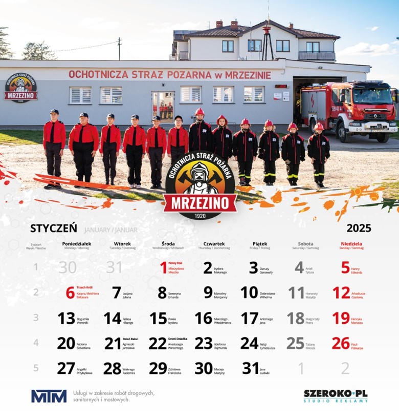 Celem kalendarza strażackiego 2025 OSP Mrzezino było pozyskanie środków finansowych, które przeznaczyliśmy na zakup ubrań specjalnych dla Młodzieżowej Drużyny Pożarniczej, środków ochrony indywidualnej oraz sprzętu biwakowego wykorzystywanego podczas szkoleń i wyjazdów.